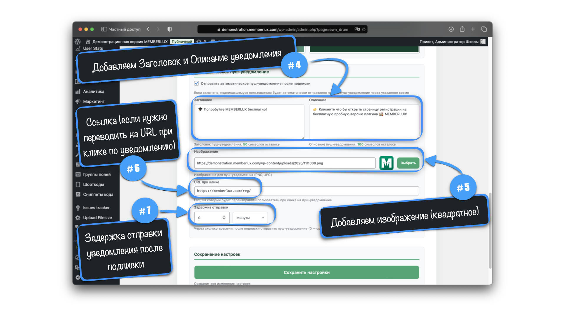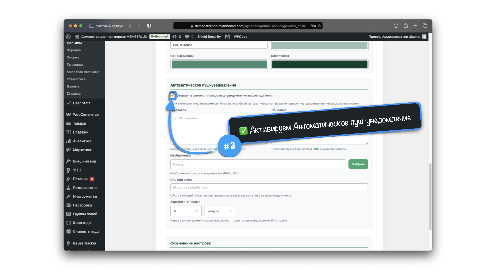 2⃣️ Настраиваем Автоматическое пуш-уведомление после подписки.