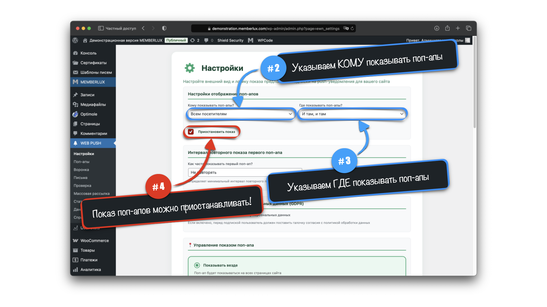 2⃣️ Настройки отображения поп-апов